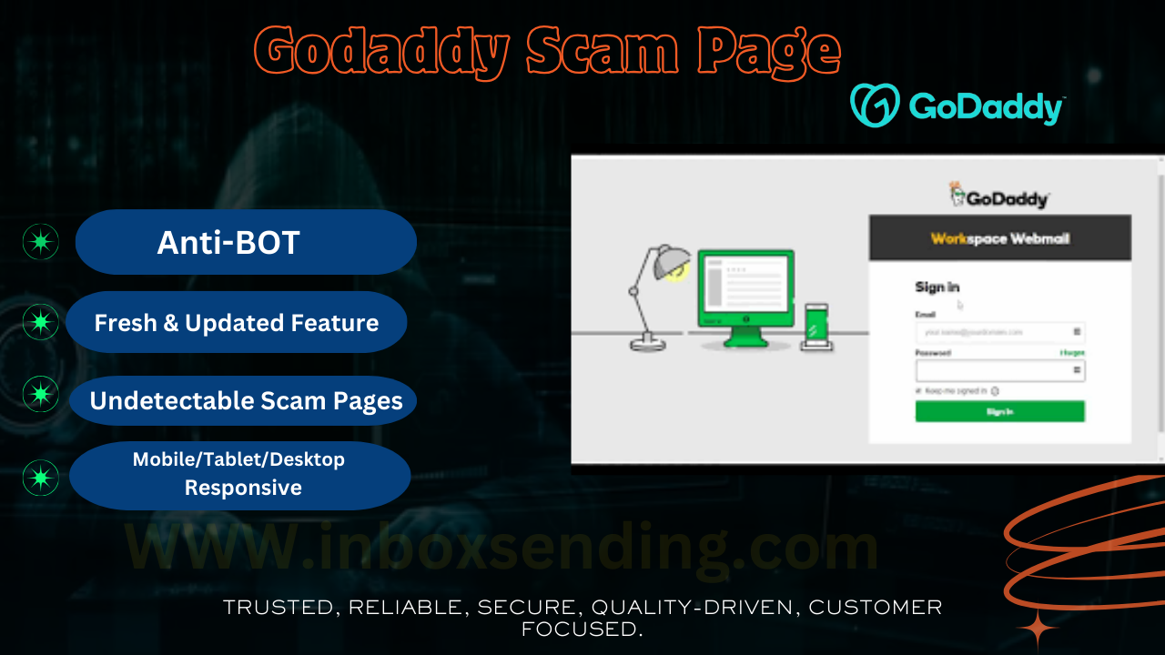 Fresh and fully encrypted GoDaddy scam pages are now available, featuring both automatic and manual email capture. These scam pages include anti-bot protection and are designed to work seamlessly across all devices. With these fully undetectable (FUD) scam pages, spammers can avoid red-flagged images, making their operations more secure. The scam pages mimic the GoDaddy login page, tricking users into providing their email credentials. Each page comes with a unique design and auto-email functionality, making them highly effective for phishing attempts.